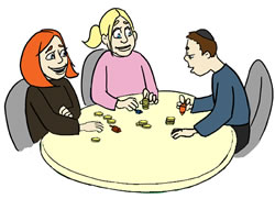 dreidel (a spinning top on which are inscribed the Hebrew letters nun, gimmel, hei and