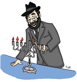 menorah while everyone else listens to the blessings and answers,