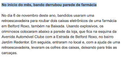 - Rio "pacificado": Bando rouba retrosscavadeira da Prefeitura de Caxias e derruba parede de mercado e leva mais um caxa eletrônico